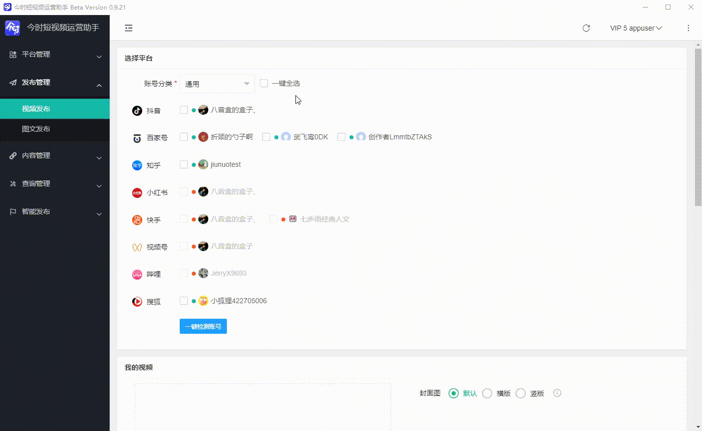 يدعم توزيع الرسومات والنصوص ومقاطع الفيديو بنقرة واحدة على 20 منصة وسائط ذاتية مثل Douyin وKuaishou وحسابات WeChat الرسمية وحسابات الفيديو وXiaohongshu وBilibili. ويدعم حسابات مختلفة لنشر أعمال مختلفة ويمكن تشغيلها على دفعات ويحقق بسهولة دقيقة واحدة التحرير والنشر بنقرة واحدة، والنشر التلقائي في الخلفية لتحسين كفاءة نشر المحتوى وكفاءة إدارة العمليات